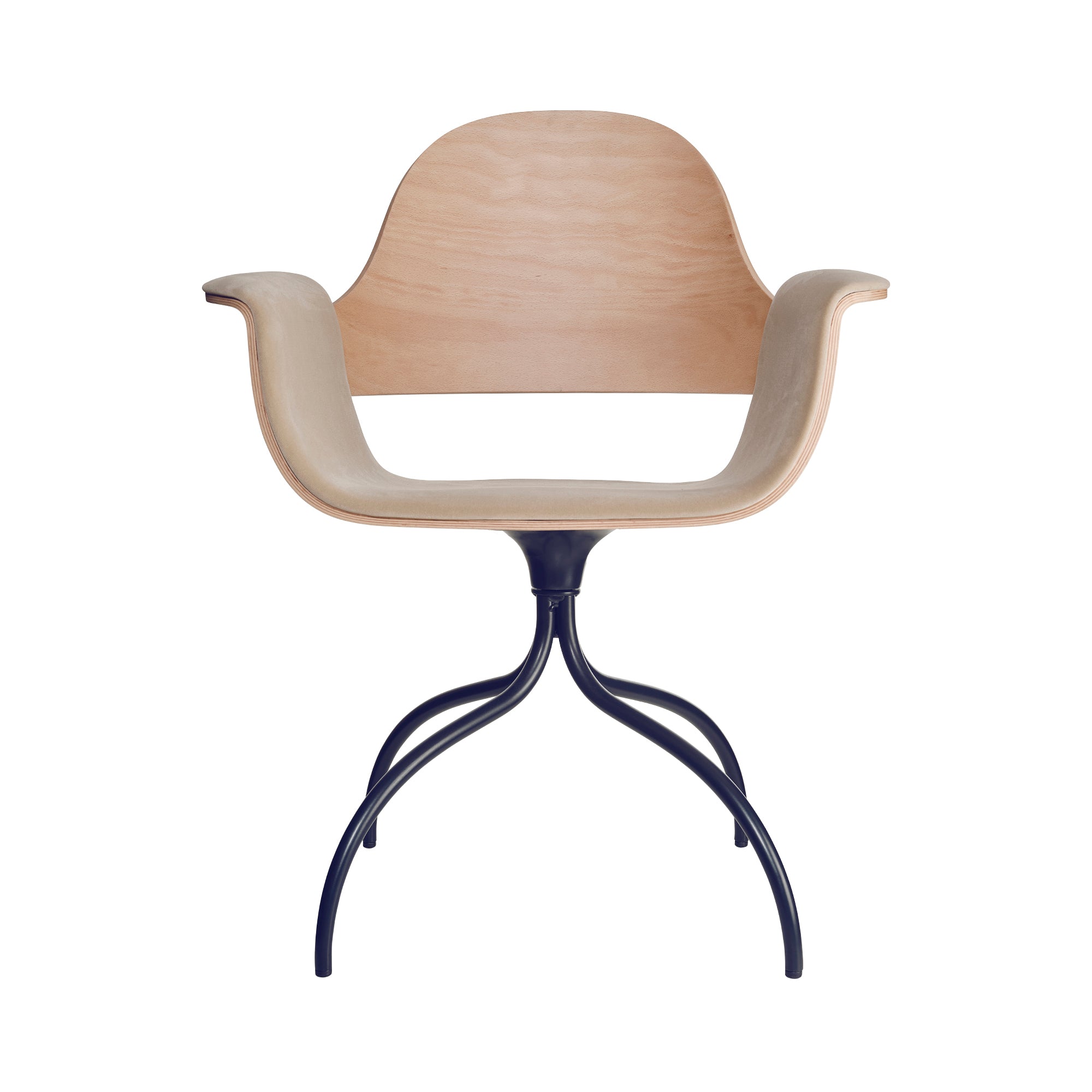 A custom-clad seat and convenient swivel function denote this model from Spanish designer Jaime Hayon’s Showtime Nude series. The molded-veneer seating’s natural woodgrain and higher, more ergonomic backrest pair with the powder-coated, steel swivel base and a choice of fabric or Leather upholstery.